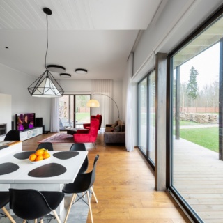 Profab Houses performed the static analyses of timber constructions, prepared drawings for producing the timber frame element house sets, produced and delivered the house set.