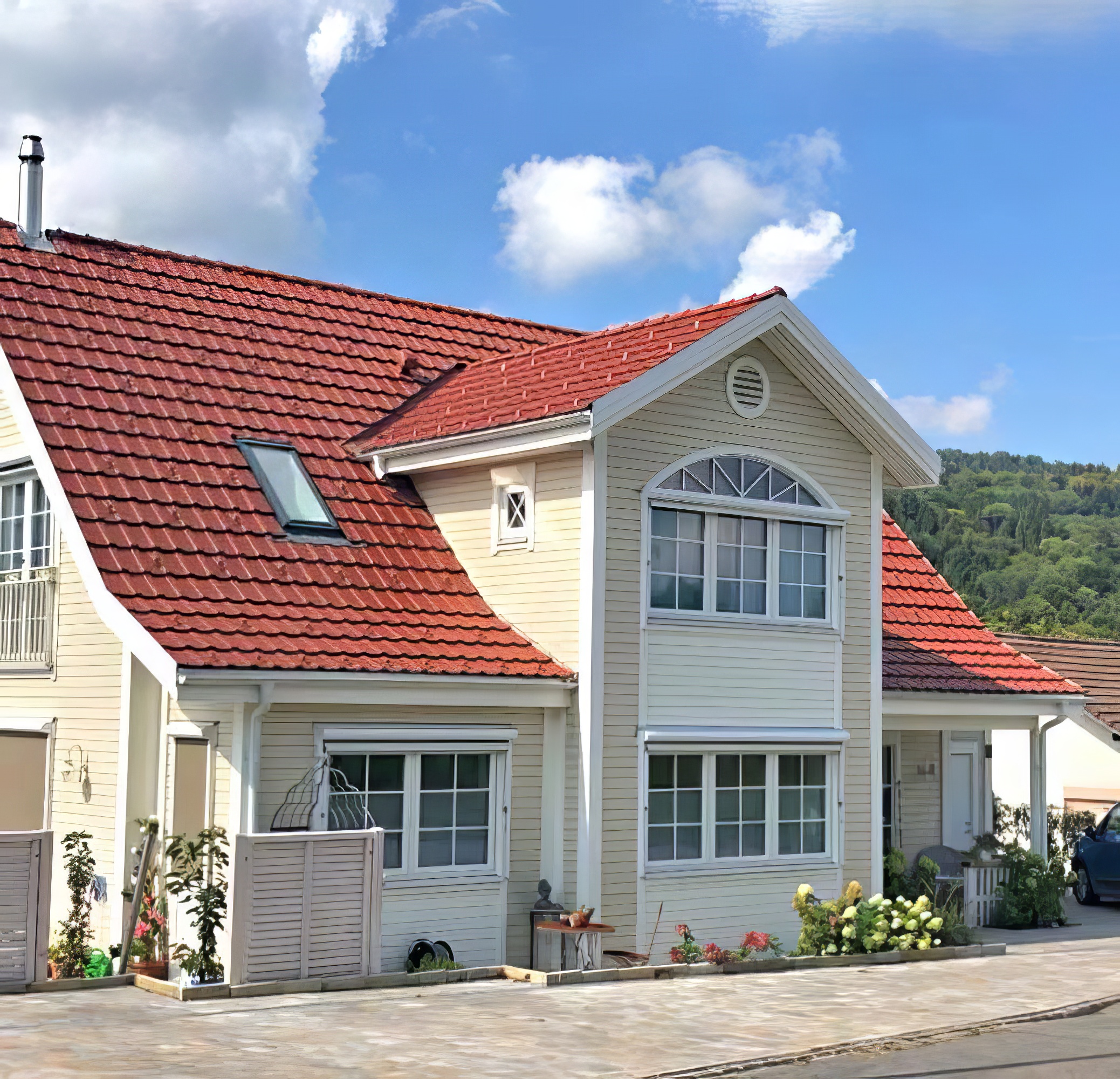 Profab Houses performed the static analyses of timber constructions, prepared drawings for producing the timber frame element house set, produced and delivered the house set.